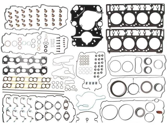 Contains Bedplate Gaskets, Bonded Sealing Washers, Cylinder Head Gaskets, Cylinder Head Dowel Pins, EGR Cooler Gaskets, EGR Valve Gaskets, Exhaust Manifold Gaskets, Fuel Injector Crush Washers, Fuel Injector O-Rings, Fuel Injector Steel Lines, Intake Manifold Gaskets, Oil Cooler Gaskets, Oil Filter Housing Seals, Oil Pan Gaskets, Rear Cover Gasket, Rear Main Seal, Rocker Box Gaskets, Rocker Box Oil Seals, Thermostat Housing Gasket, Throttle Body Gaskets, Timing Cover Gaskets, Timing Cover Seal, Turbocharger Gaskets, Valve Cover Gaskets, Valve Cover Grommets, Valve Stem Seals, Water Pump Gasket